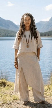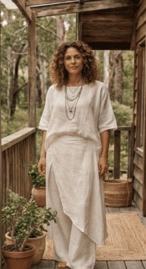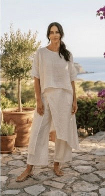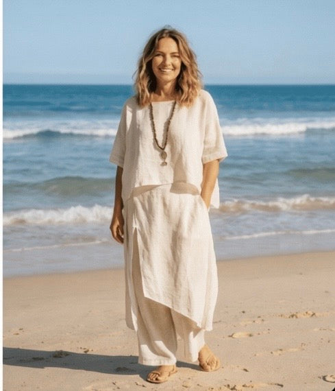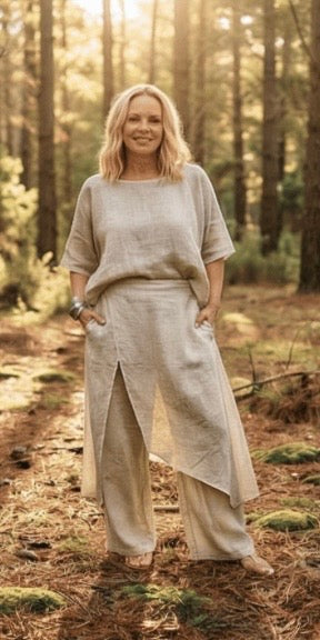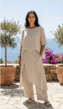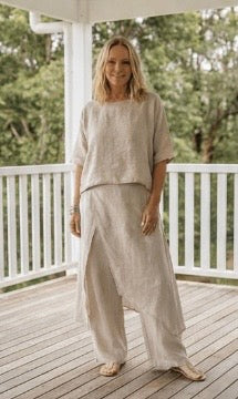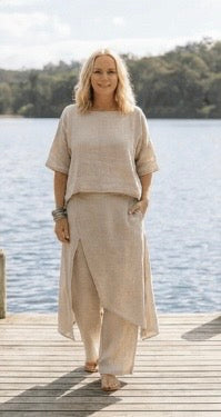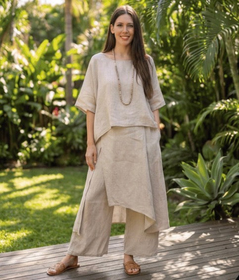 Linen is a natural, breathable fabric that softens beautifully over time. For best results, wash in cold water on a gentle cycle and air dry. See full linen care guide