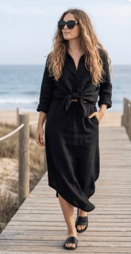 Linen is a natural, breathable fabric that softens beautifully over time. For best results, wash in cold water on a gentle cycle and air dry. See full linen care guide