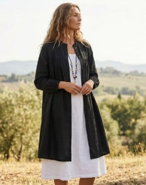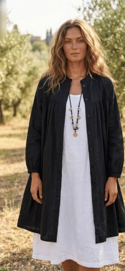The Jade Cotton Jacket is a beautifully designed midi-length piece that blends sophistication with everyday comfort. Crafted from quality cotton, this jacket features a stunning mandarin collar with a delicate button detail, creating a clean and elevated neckline.