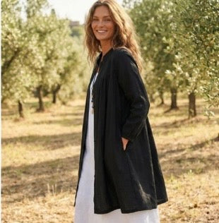The wide sleeves are finished with soft elastised cuffs, offering both shape and extra comfort, while essential pockets (of course) bring that practical touch we all love.
