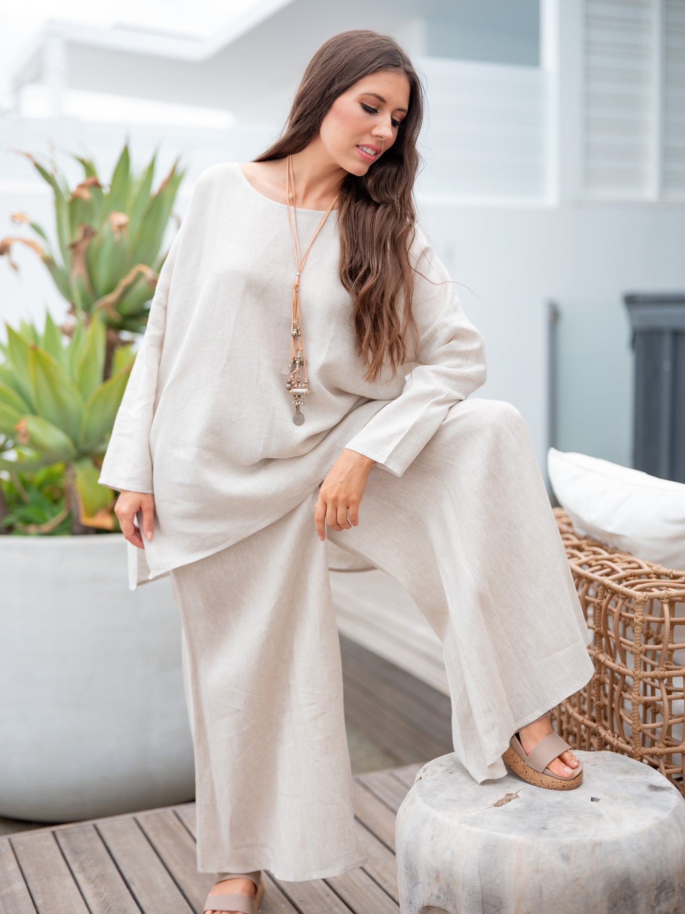 Linen is a natural, breathable fabric that softens beautifully over time. For best results, wash in cold water on a gentle cycle and air dry. See full linen care guide