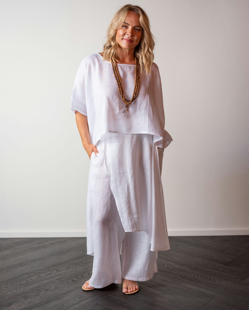 With an elastised band and different lengths, our new gorgeous pants are a skirt pant with an elasticized waist band. Regardless of your size, it falls beautifully and moves with ease.