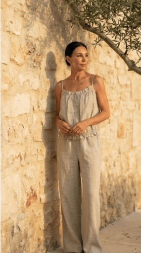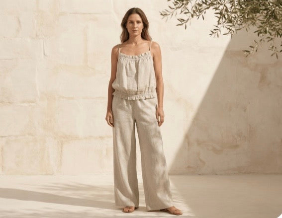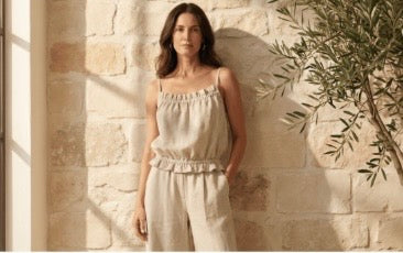 Linen is a natural, breathable fabric that softens beautifully over time. For best results, wash in cold water on a gentle cycle and air dry. See full linen care guide