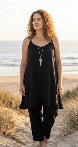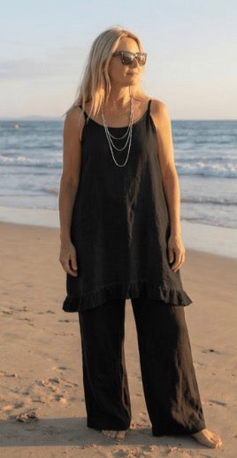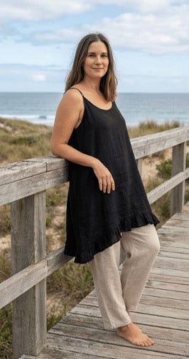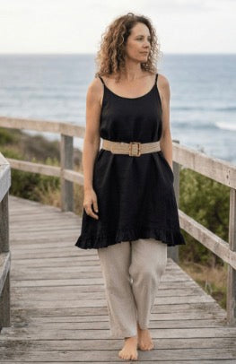 Linen is a natural, breathable fabric that softens beautifully over time. For best results, wash in cold water on a gentle cycle and air dry. See full linen care guide