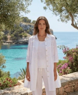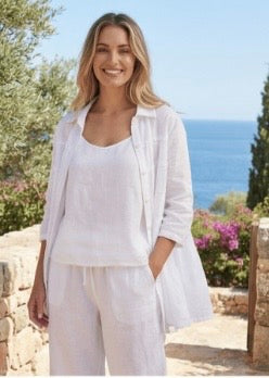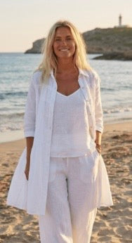 Linen is a natural, breathable fabric that softens beautifully over time. For best results, wash in cold water on a gentle cycle and air dry. See full linen care guide