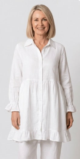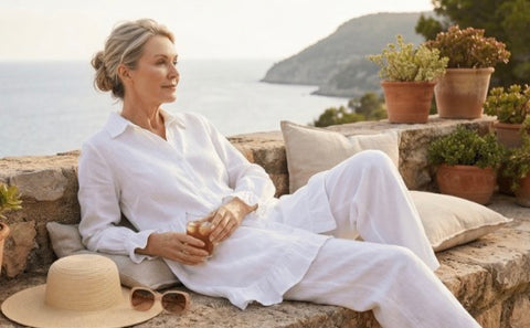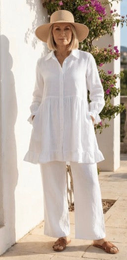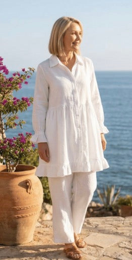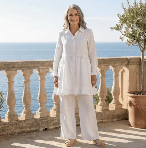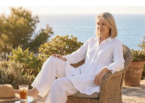 Linen is a natural, breathable fabric that softens beautifully over time. For best results, wash in cold water on a gentle cycle and air dry. See full linen care guide